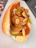 Spicy Italian sausage with peppers, onions, mushrooms, and marinara sauce.